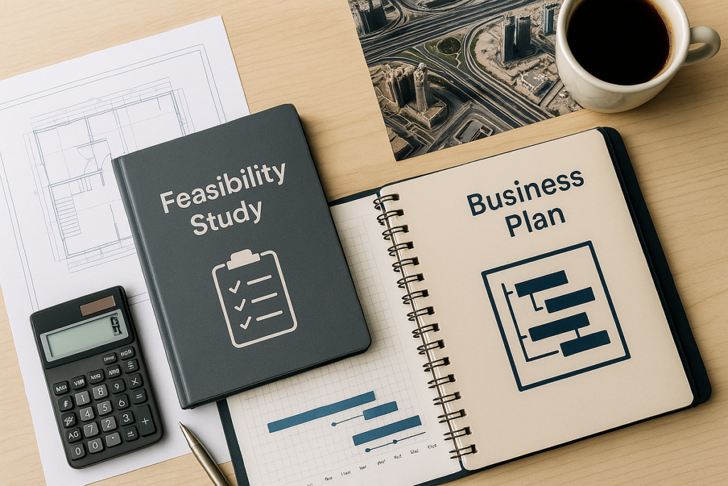 - Business Plan: Comes second, after the feasibility study has proven the project is viable. It is a detailed document explaining how the project will be implemented. It includes objectives, strategies, organizational structure, marketing and financial plans, and how profits will be achieved. It is the “operational guide” for the project after the decision to proceed has been made.